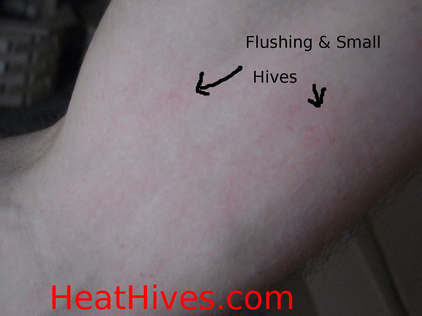 I even had a “BAD” type of outbreak. I was just sitting in my apartment. Suddenly I felt the prickly stinging/itching sensation in a few spots. So I scratched & didn’t think about it. Then, it kept doing it. I thought…Okay why am I breaking out right now. I then start scratching myself like crazy on my head, chest, abdomen, arms, etc. I told my wife to grab our camera. Then, after intense itching, my chest became red in a lot of areas, and I developed a few of the “pinpoint” hives. Here are some pictures of this whole event: PS..I apologize in advance about the small amount of chest hair, but in my defense, I am a guy…hehe.